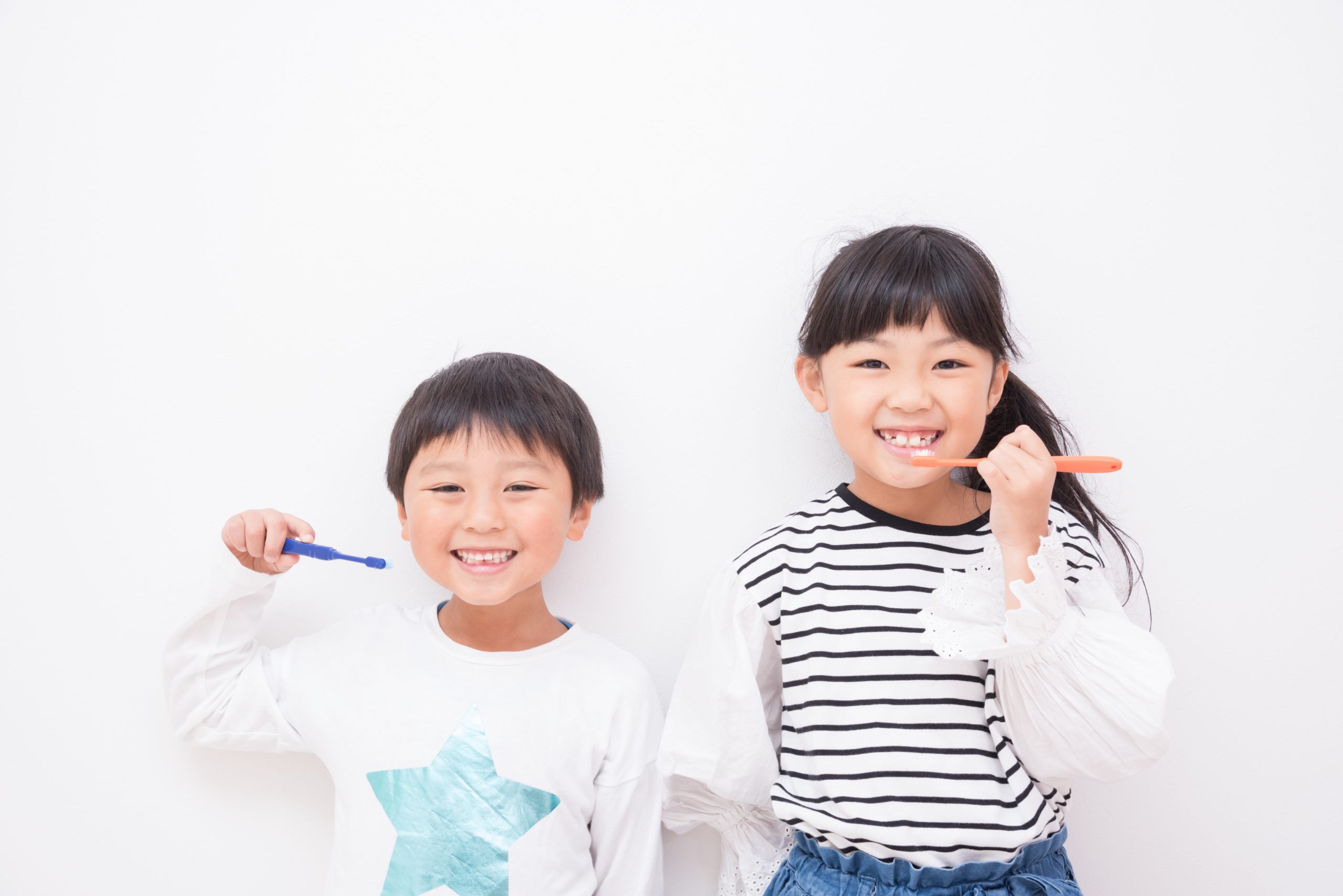 お子様の歯を守るために最も重要なのは、毎日の歯磨きです。小学校低学年までは、お子様が自分で磨いた後、必ず保護者様が仕上げ磨きをしてください。特に、奥歯の噛む面、歯と歯の間、歯と歯ぐきの境目は、磨き残しが多い部分ですので、丁寧に磨きましょう。